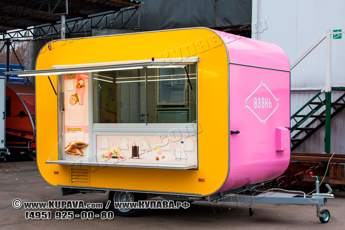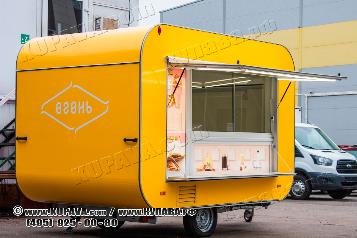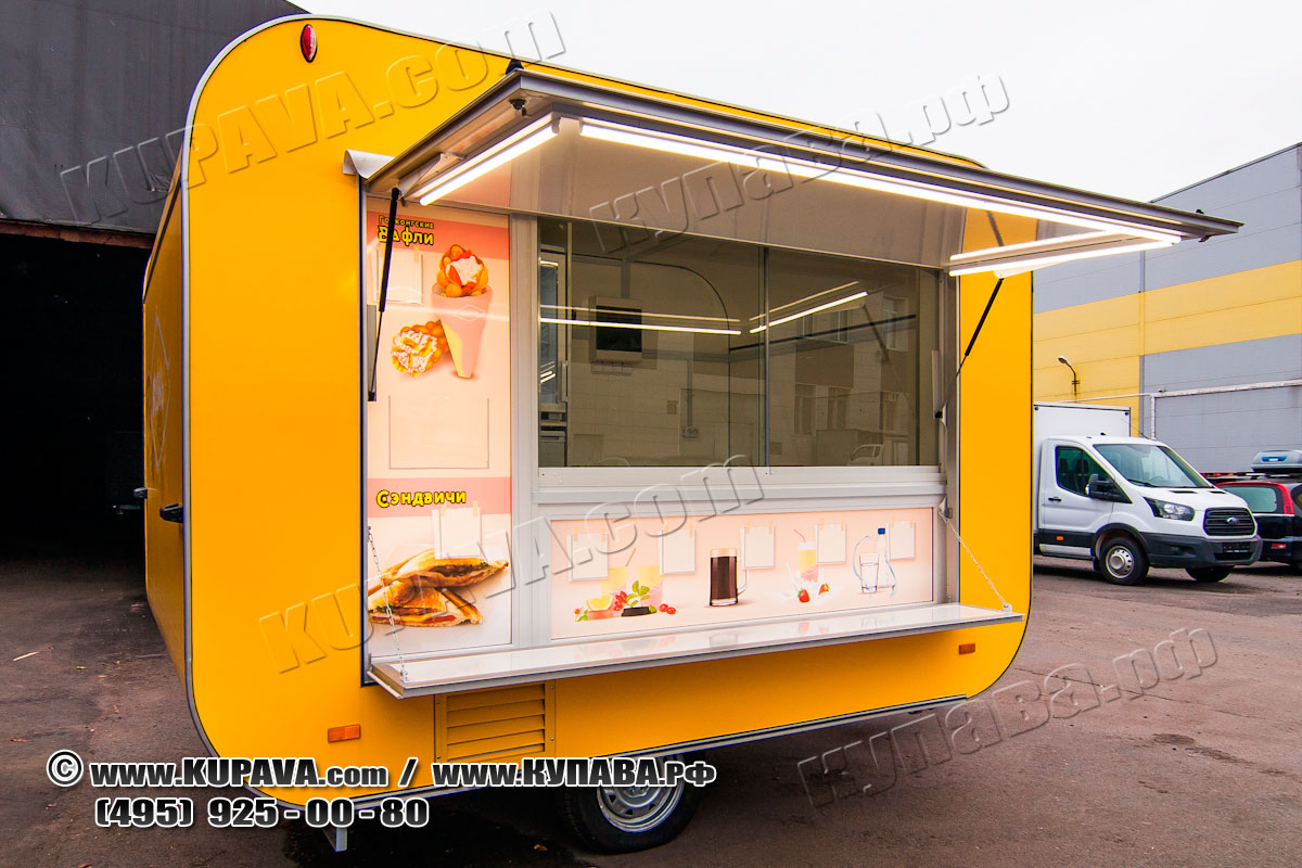 Автоприцеп Vision 3м мобильное кафе, точка быстрого питания. Полный комплект оборудования и рекламное оформление с меню.