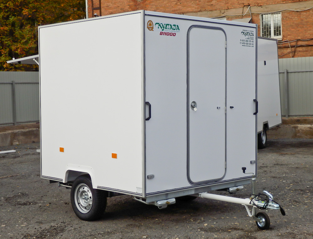 Малый одноосный торговый прицеп «Купава» модель 813211-10 предназначена для торговли продуктами общественного питания. Конструкция передвижного магазина предусматривает возможность установки торгового холодильного оборудования, оборудования «Гриль», вендинговых аппаратов или точек фаст-фуд.