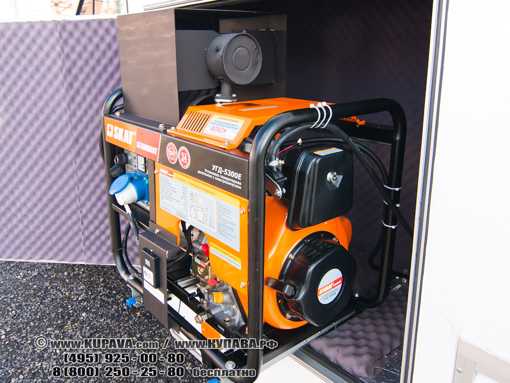 - электростанция REG GG8000A (725*550*625) ручной + электро пуск, номин. мощн. 6,5кВт , вес — 94 кг, объем топливного бака- 28л, Расход топлива- 2,6 л/ч
