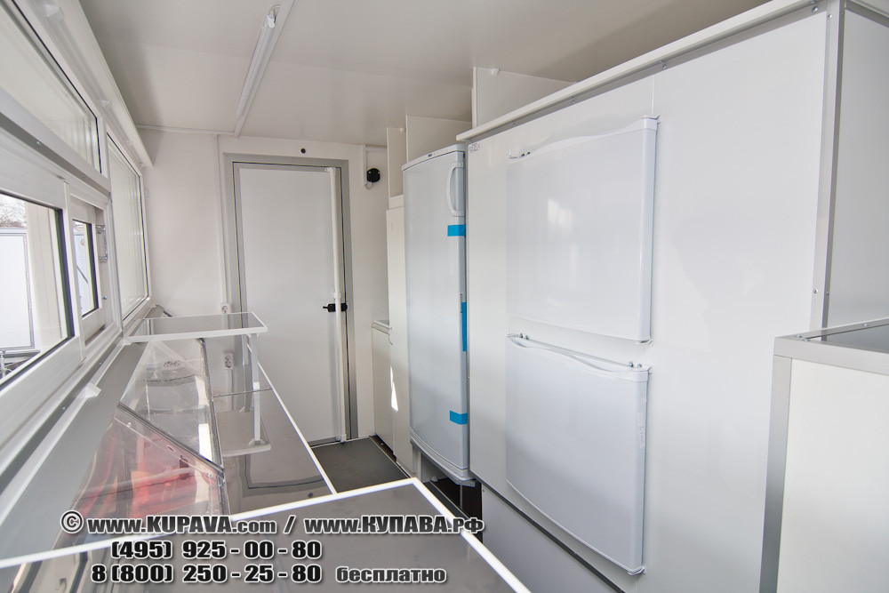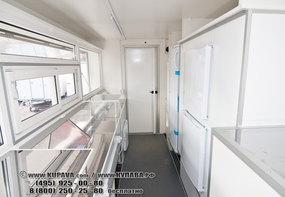 на фото: Автолавка «Купава» с кузовом КТ-4122 для выездной торговли на шасси автомобиля Ford с бензо-генератором и холодильным оборудованием..
