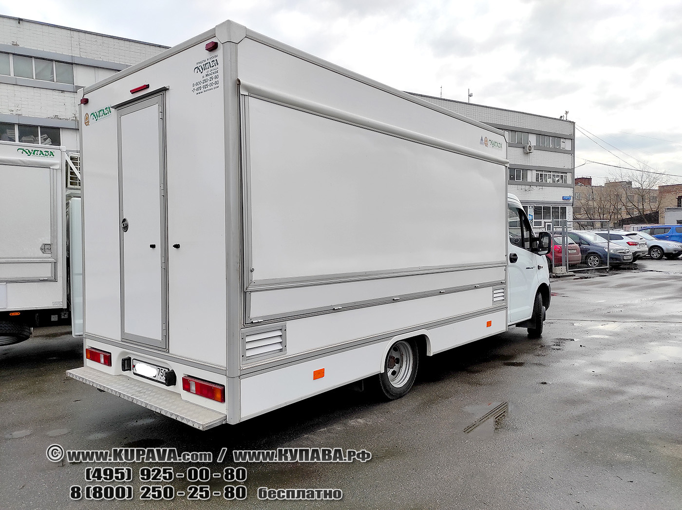 МОБИЛЬНЫЙ МАГАЗИН Купава мод. КТ 4322 на шасси ГАЗель NEXT. Пластик с внешней и внутренней стороны кузова (для шасси ГАЗель NEXT внутр.4,2*2,2*2,0м; одна разрезная по длине ставня-полка; в исполнении с фальшбортами), Б/У