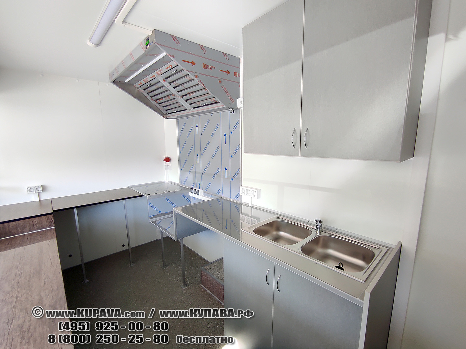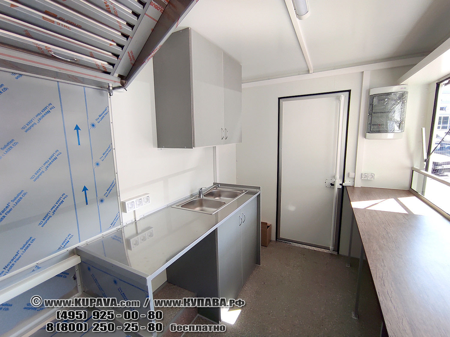 - электропроводка 12кВт, 32А, 380В (дополнительные блоки розеток, раздельные автоматы под силовое оборудование, защита УЗО, бортовой ввод)