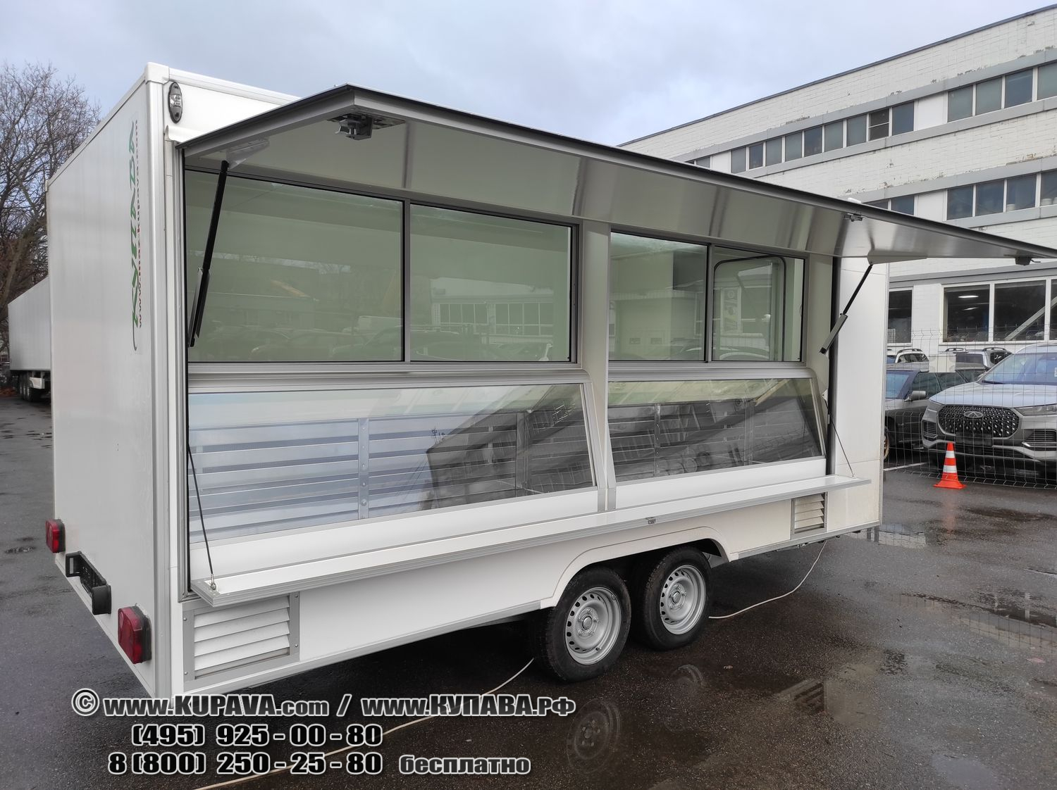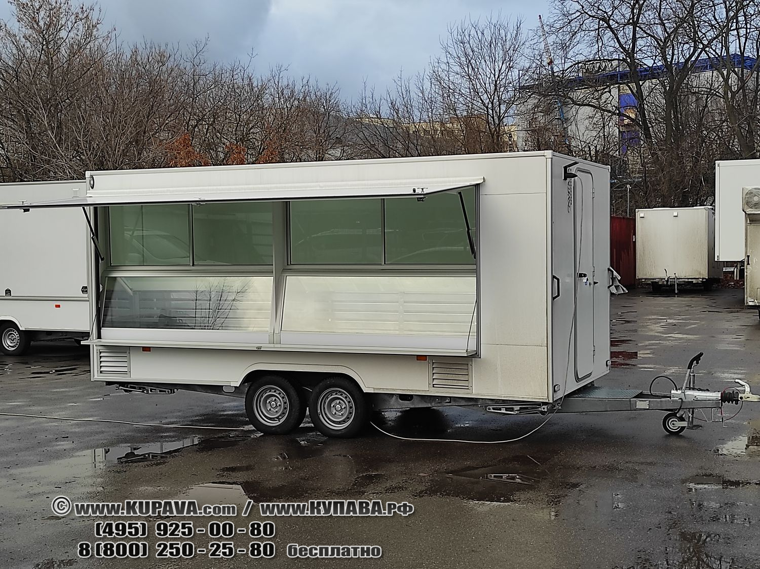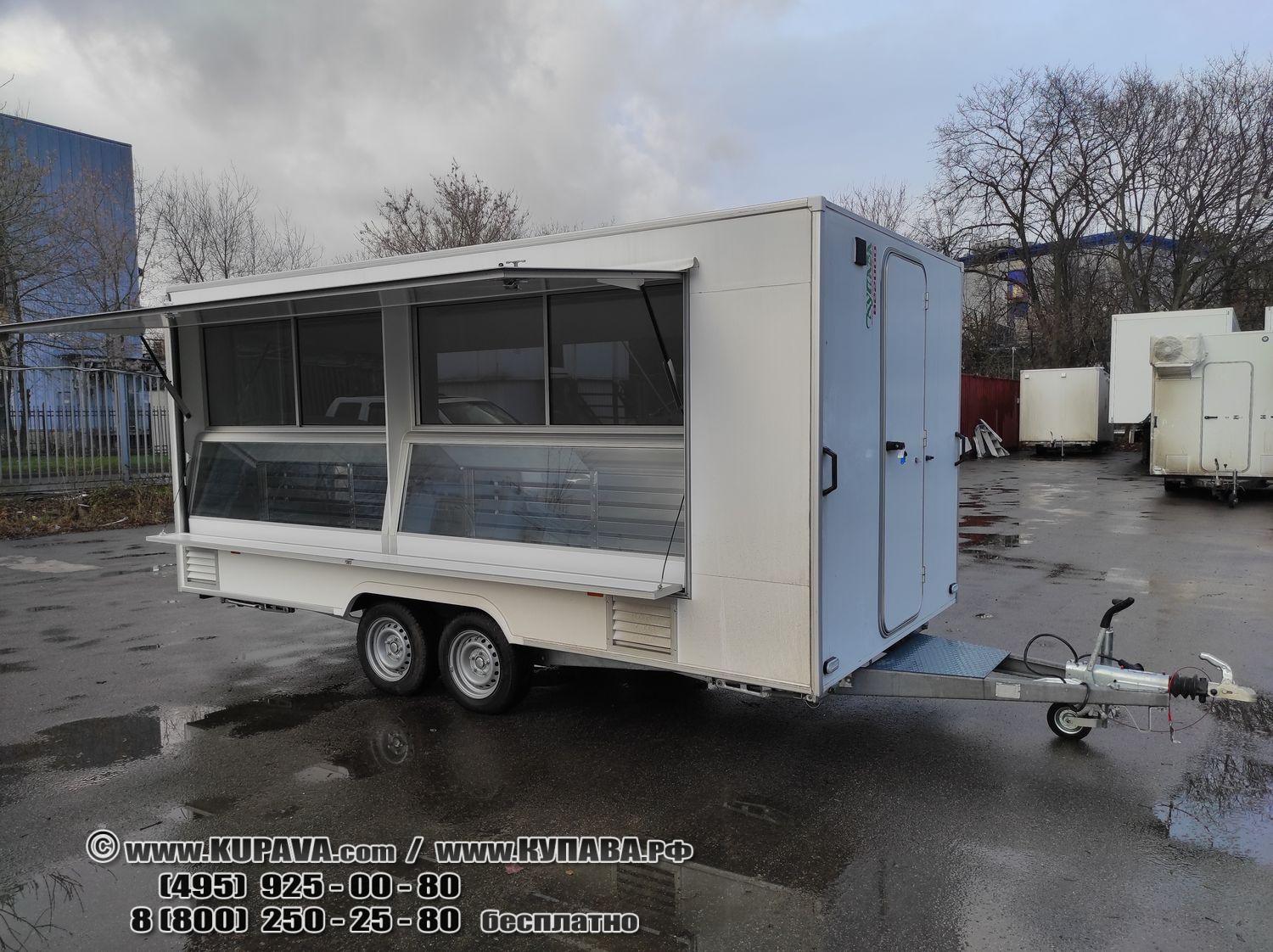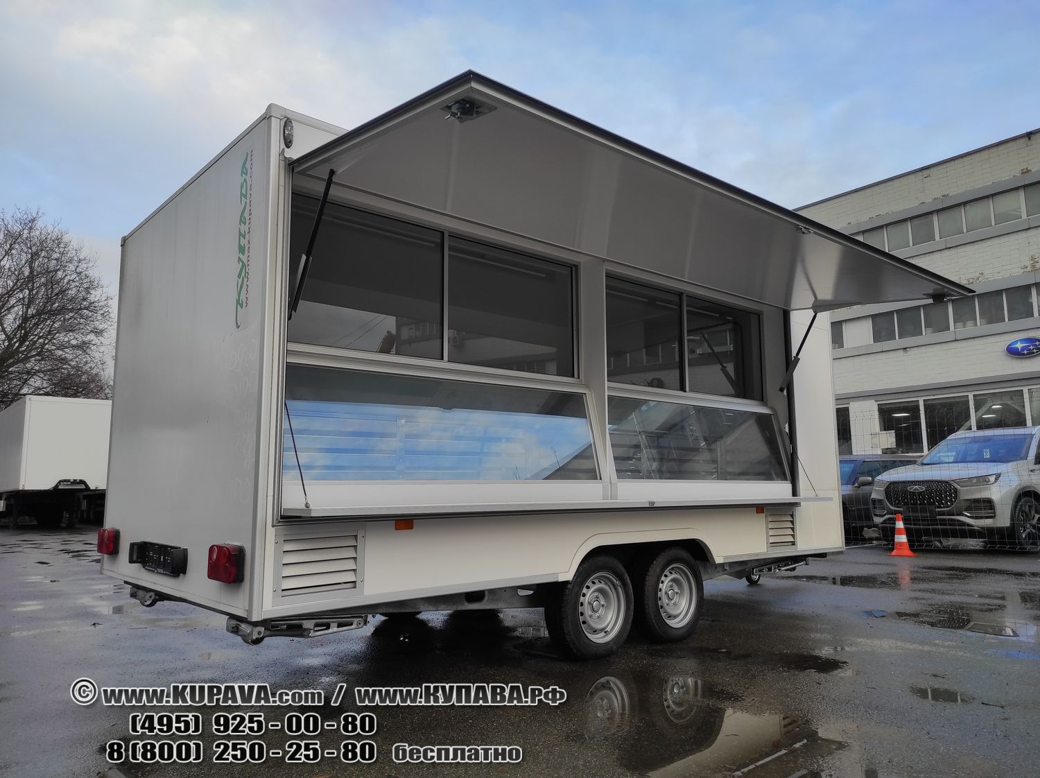 прицеп «Купава» мод. 822000 (813290) (вн.4.4х2.1х1.9м, двухосный, тормоз наката, корпус из цельноклеенных сэндвич-панелей, внешняя и внутренняя облицовка — пластик, одна разрезная по длине ставня-полка), НОВЫЙ