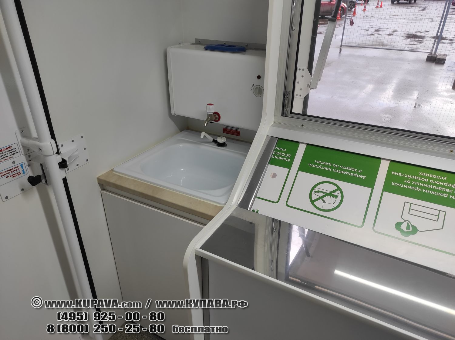 - автономное водоснабжение (тумба с раковиной, погружной насос, контактный кран, две канистры по 20л, блок питания 12В