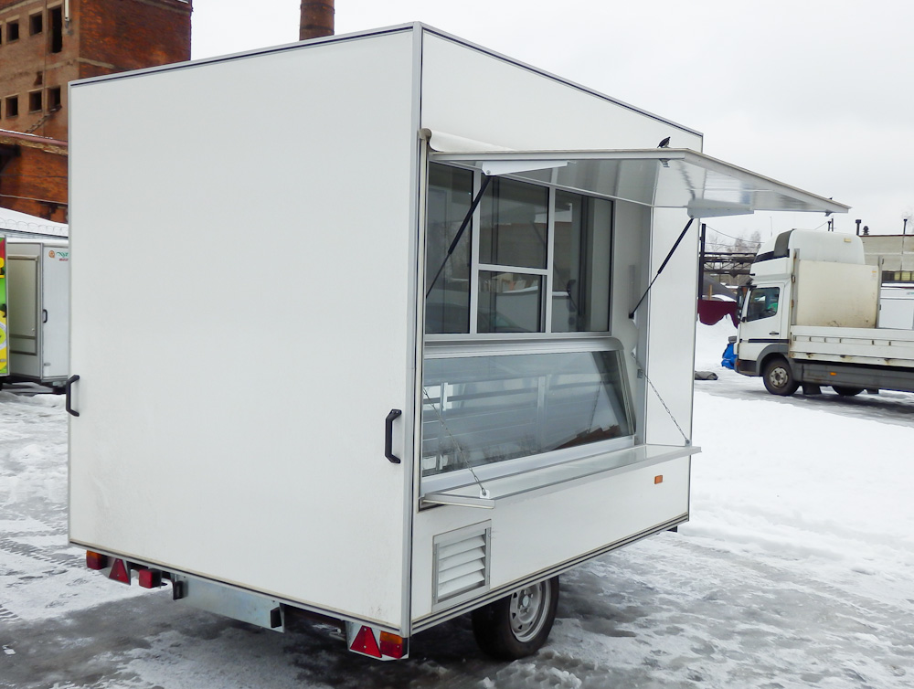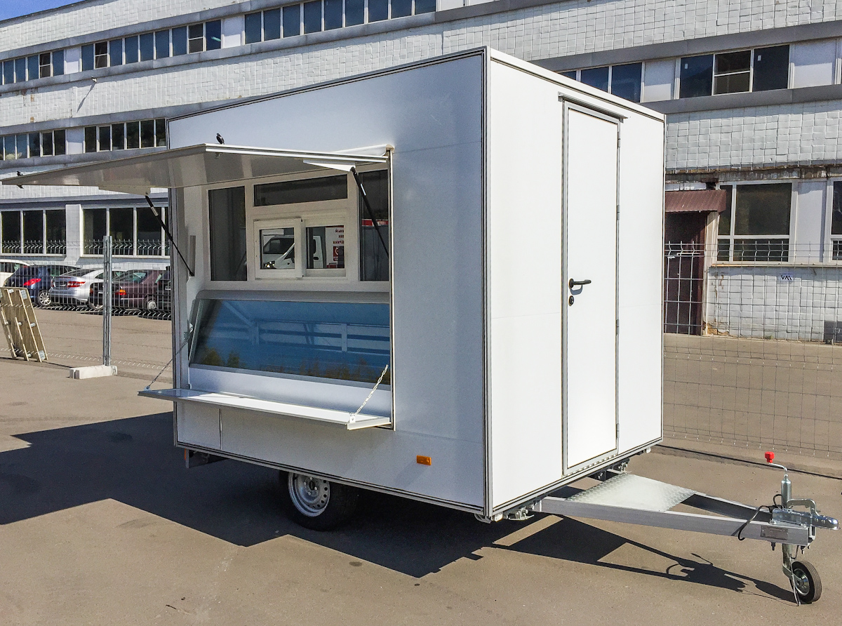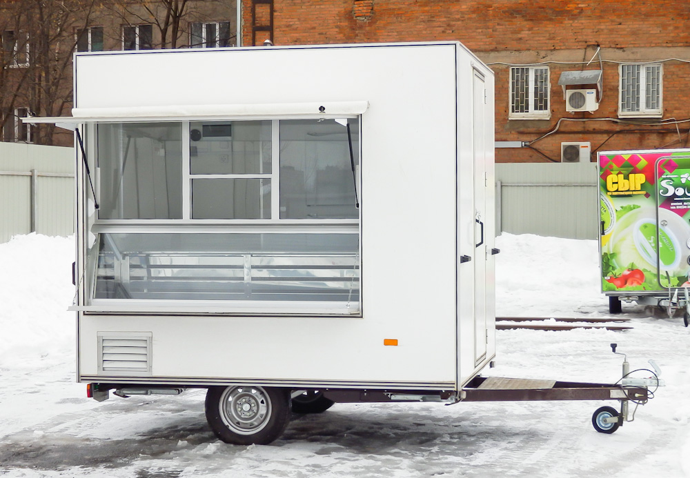 Прицеп длинной 2.5м, одно рабочее место. Грузоподъемностью до 100 кг. Предназначен для создания точек "быстрого питания", фаст-фуд. Автоприцеп торговый 813211-25 базовая комплектация Торговый прицеп Купава 813211-25 - малый одноосный прицеп Купава, предназначенный...