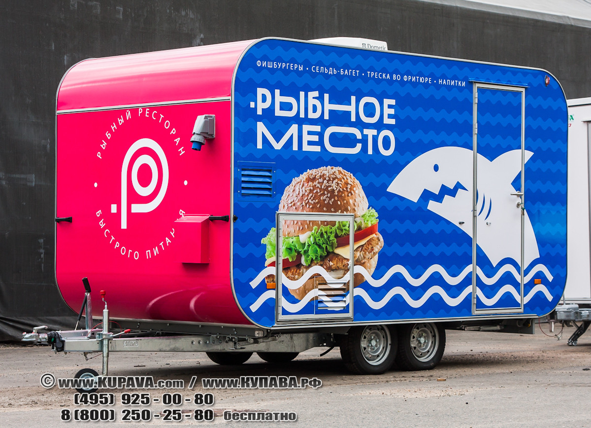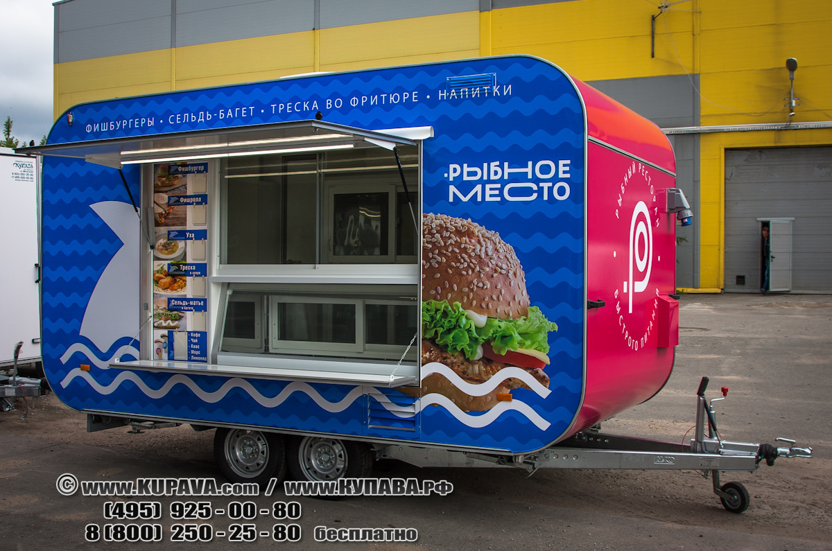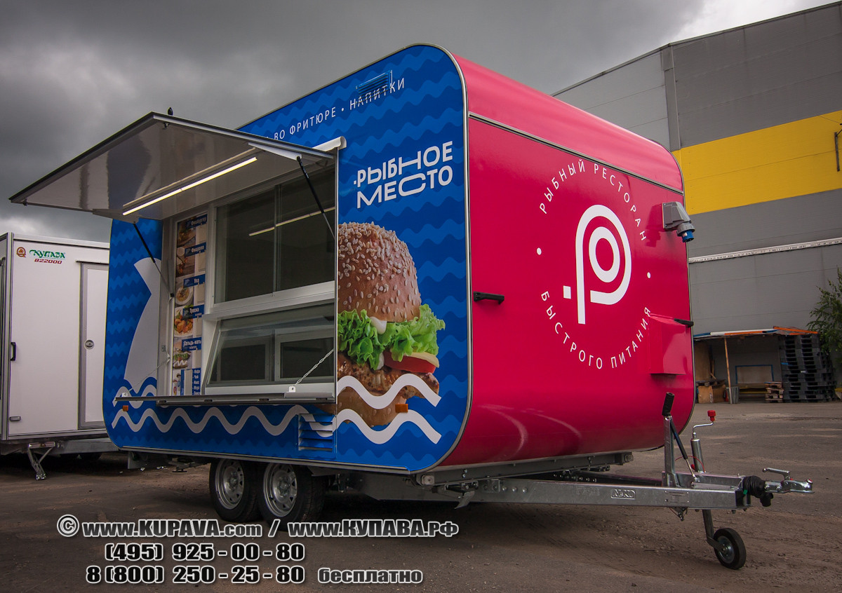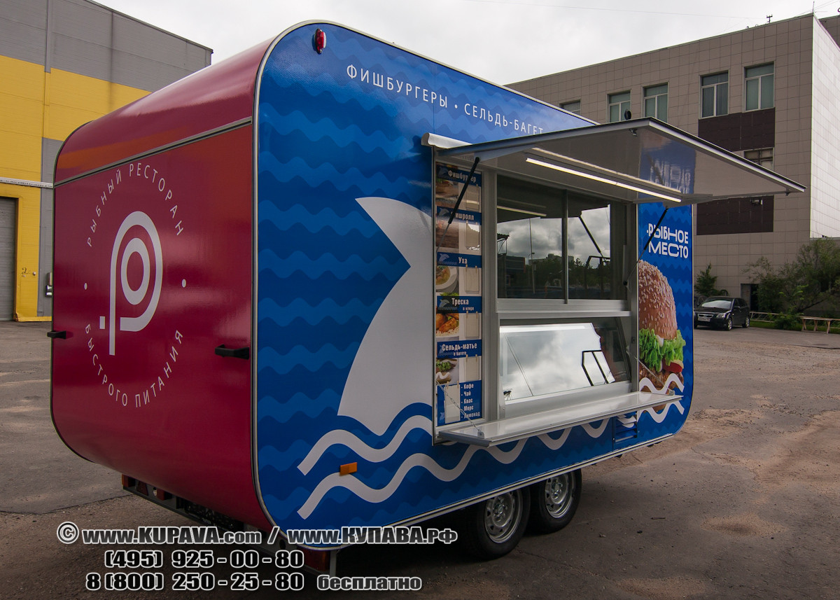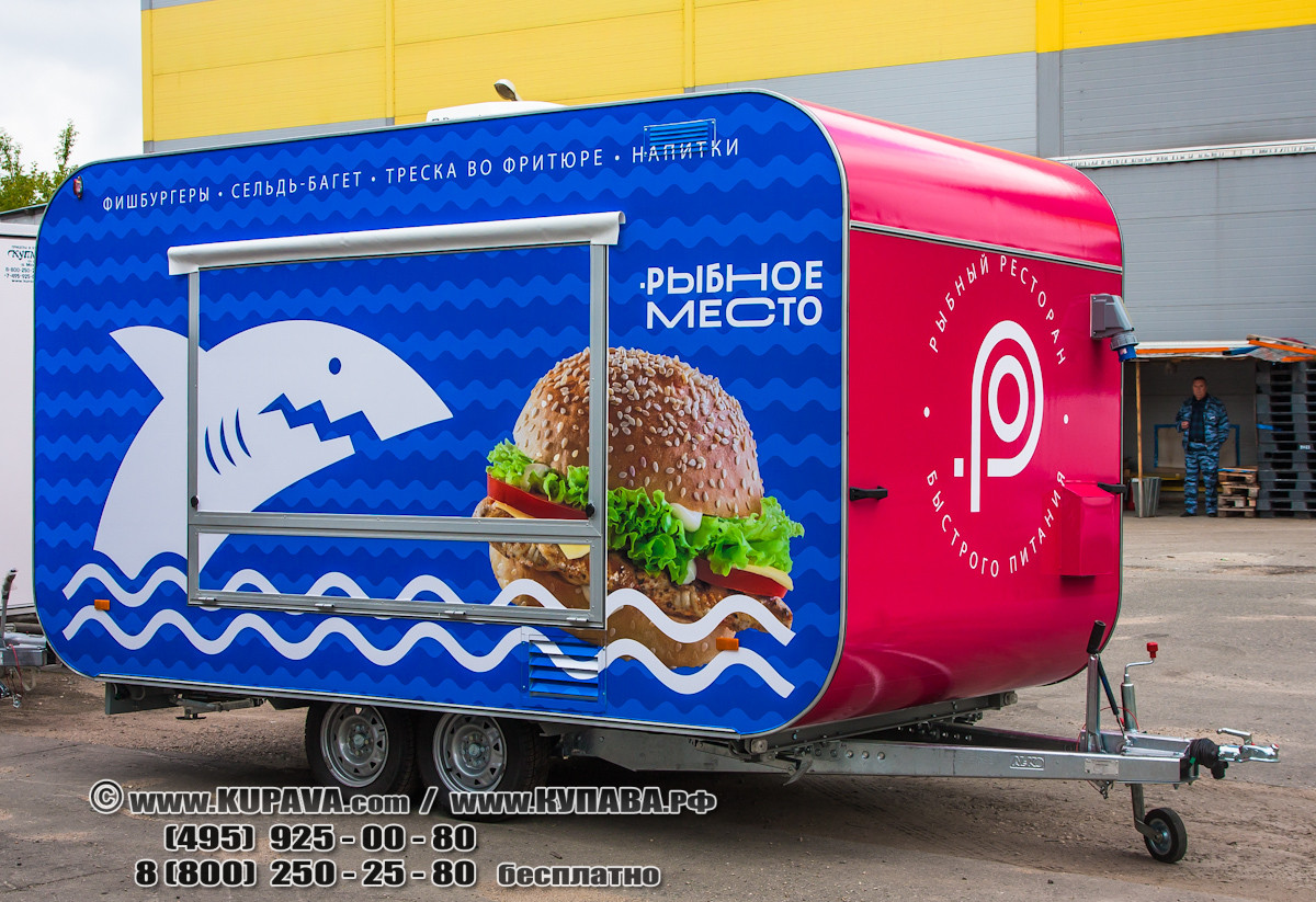 Автоприцеп Vision 3.0м точка быстрого питания. Полный комплект оборудования и рекламное оформление с меню.