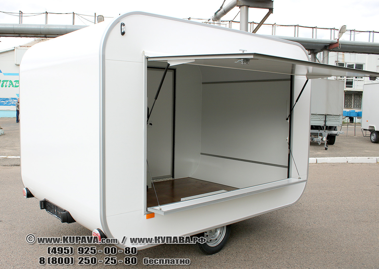 Автоприцеп Vision 3.0м точка быстрого питания. Полный комплект оборудования и рекламное оформление с меню.